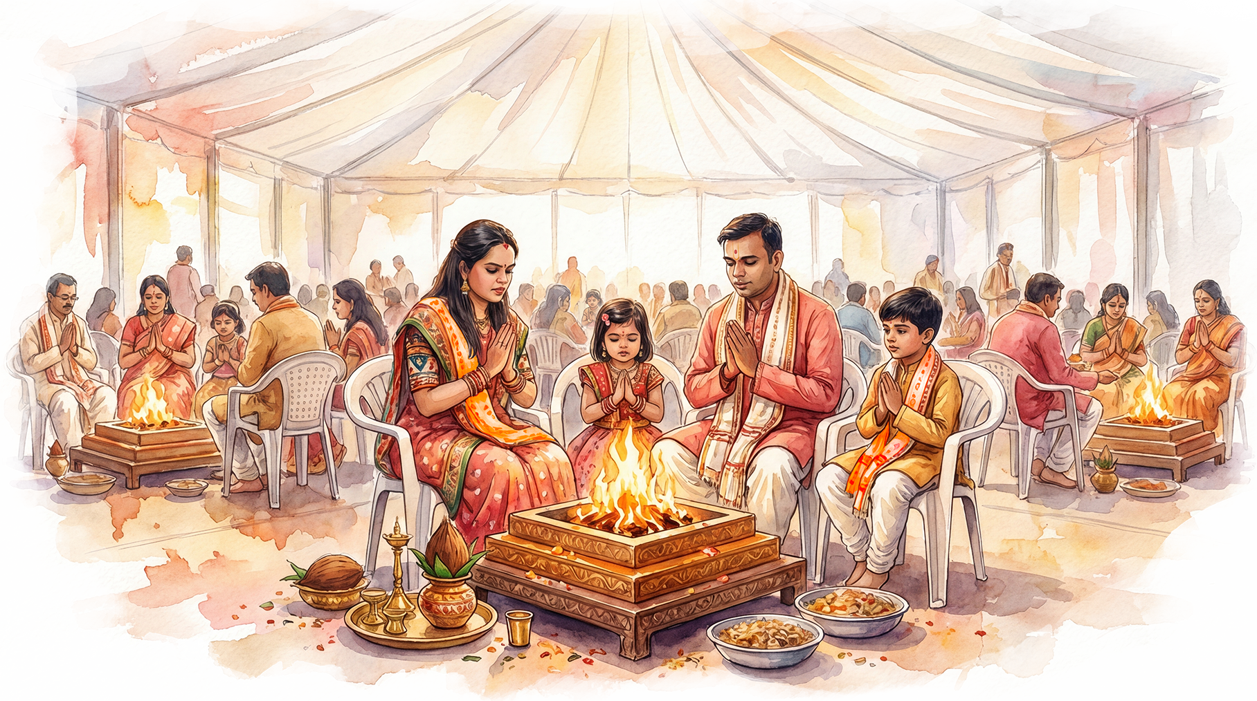 Rutviks (official yagna priests) and volunteers will be present at each kund to guide participants through every step of the ceremony.